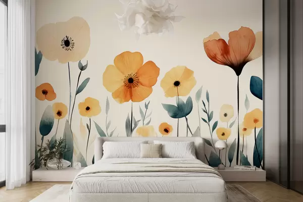 Murais de parede Bleunioù ar pradoù gant dourliv, rust, kempenn bleunioù, tresadenn eeun, beige, orañjez, glas Nr. w01453