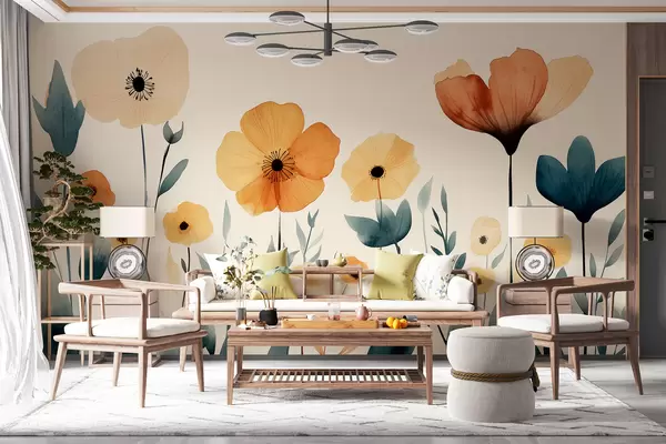 Murais de parede Bleunioù ar pradoù gant dourliv, rust, kempenn bleunioù, tresadenn eeun, beige, orañjez, glas Nr. w01453
