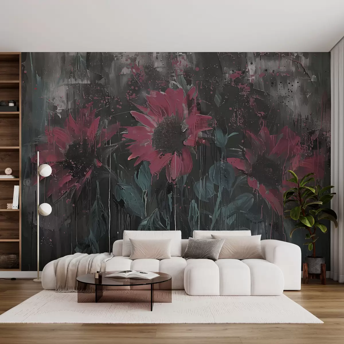 Murais de parede Skeudenn difetis bleunioù-heol, foñs gris teñval ha livioù ruz-roz Nr. w01480v1