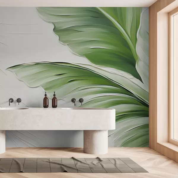 Murais de parede Folhas verdes em uma leve imitação de pinceladas Nr. w01557
