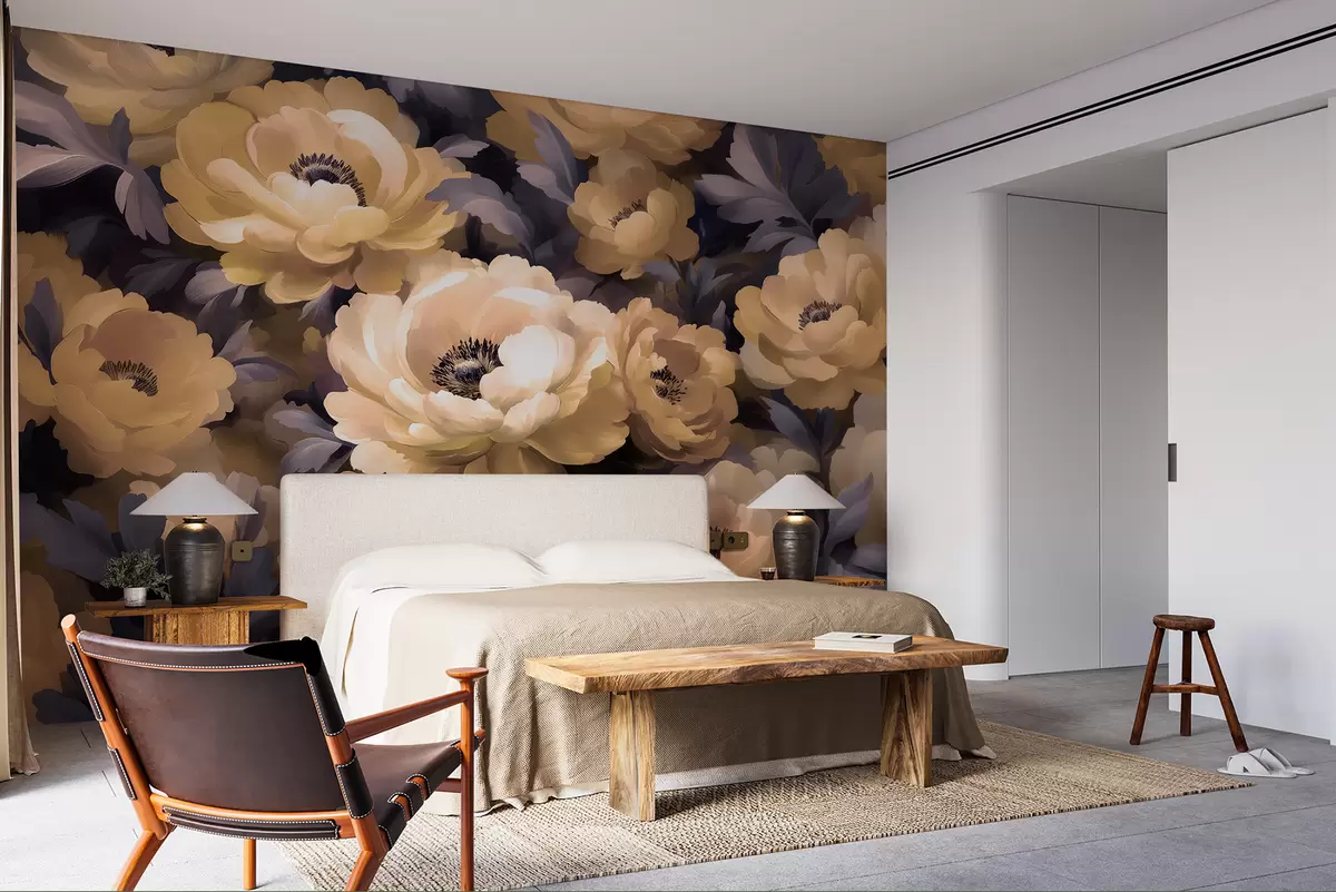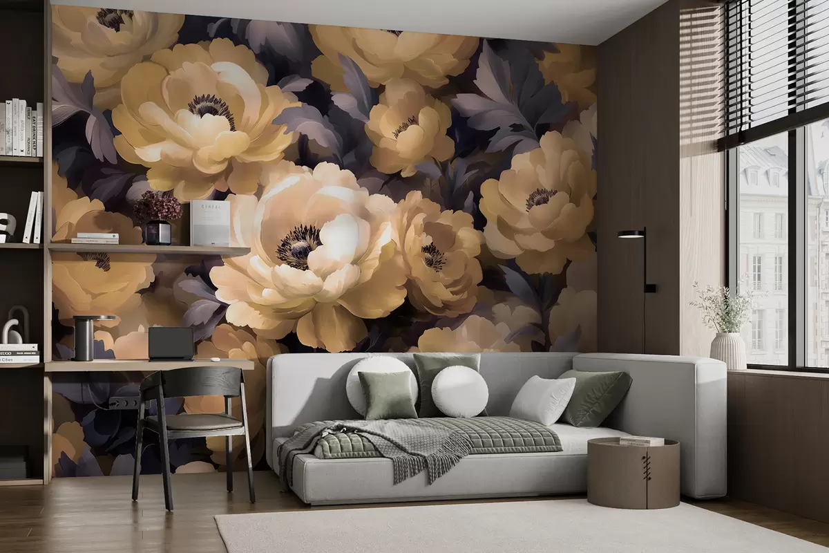 Murais de parede Estilo de pintura a óleo floral baseado nas cores bege e roxo Nr. w01581