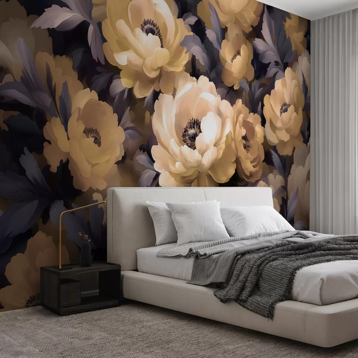 Murais de parede Estilo de pintura a óleo floral baseado nas cores bege e roxo Nr. w01581