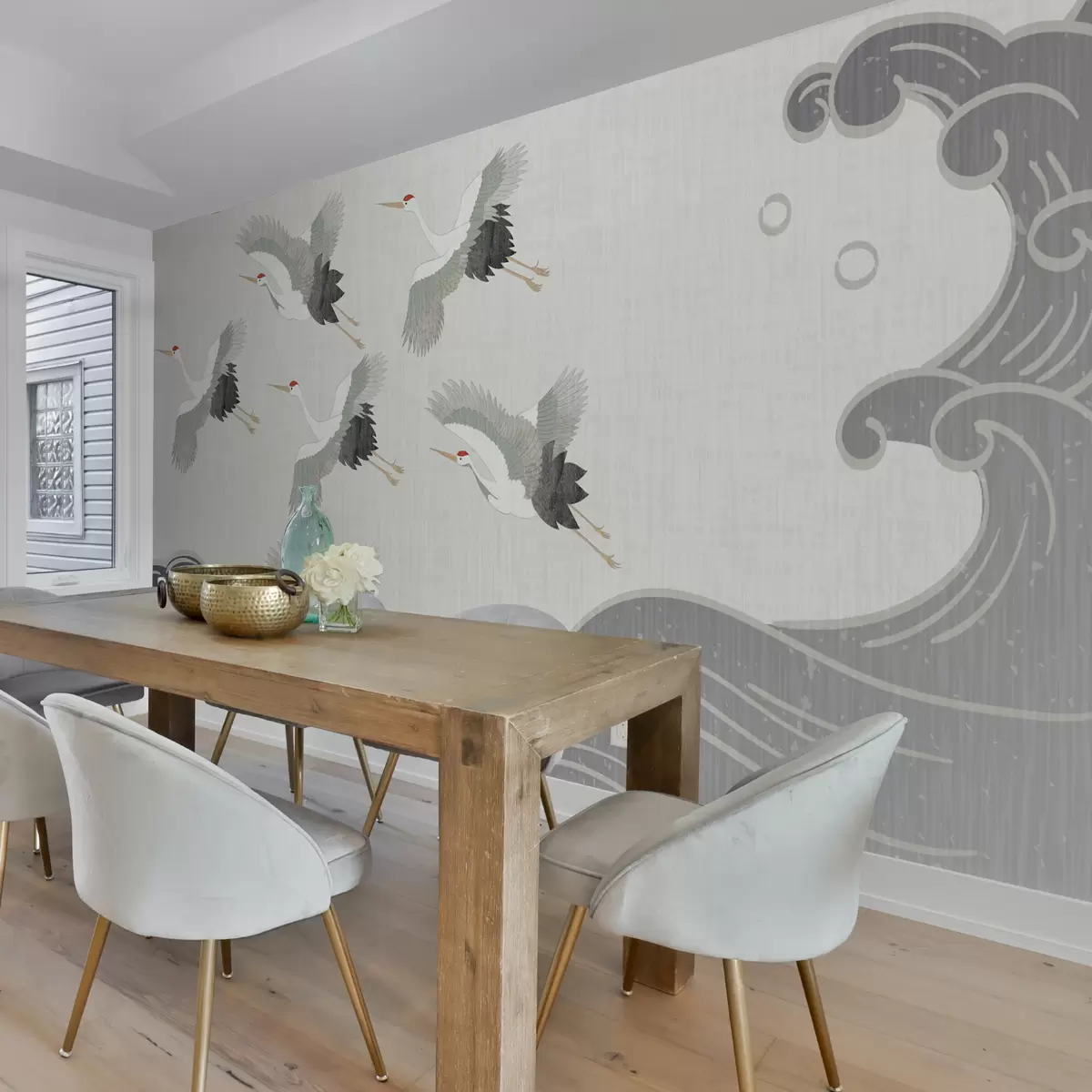 Murais de parede Guindastes, onda cinza, estilo japonês Nr. w01595