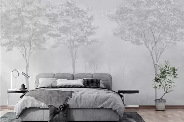 Murais de parede Silhueta de floresta enevoada na cor cinza Nr. w01599v5
