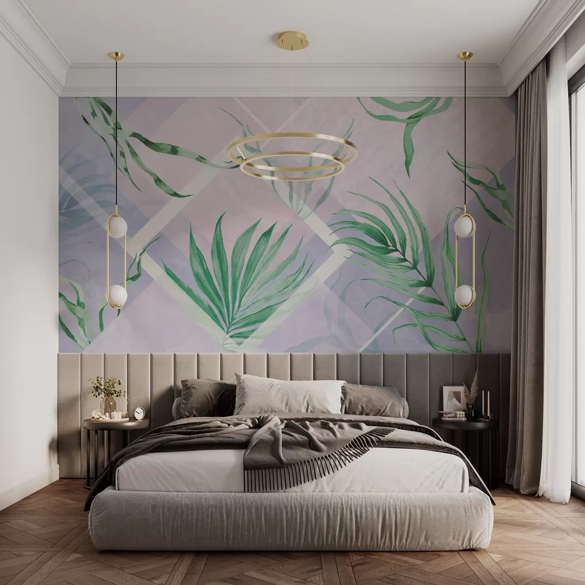 Murais de parede Verdes exuberantes em um fundo pastel suave Nr. w01625