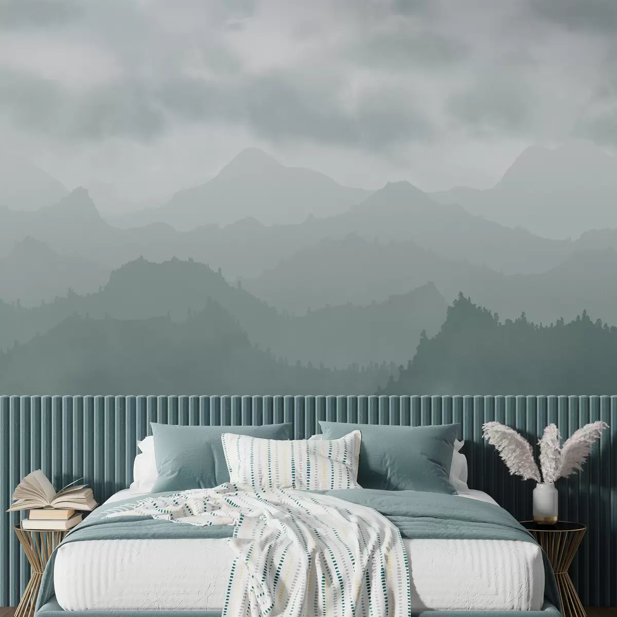 Murais de parede Montanhas enevoadas com nuvens azuis cirrus no céu Nr. w01637v2
