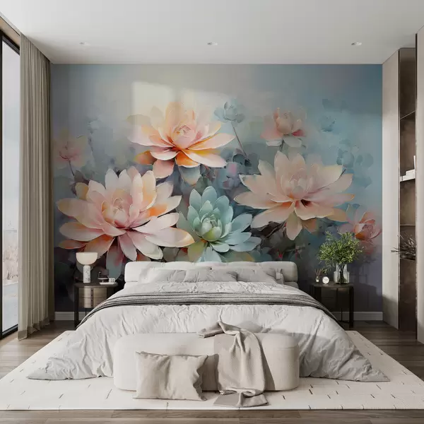 Murais de parede Delicadas flores desabrochando em um fundo cinza-azulado Nr. w01654