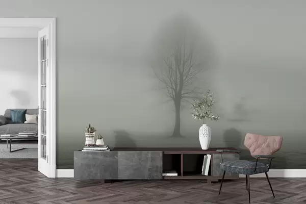 Murais de parede Árvore na neblina em cores verde-escuras Nr. w01660
