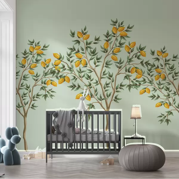 Murais de parede Limoeiro, fundo verde Nr. w01661v2