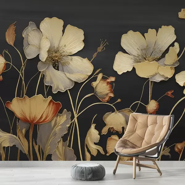 Murais de parede Fundo escuro, flores grandes, flores altas Nr. w01668