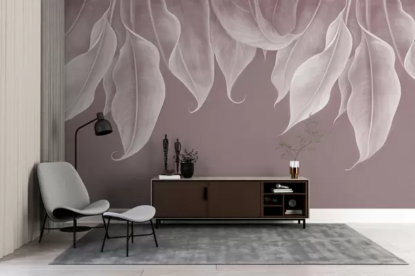 Murais de parede Folhas grandes pendentes na cor rosa Nr. w01680v2