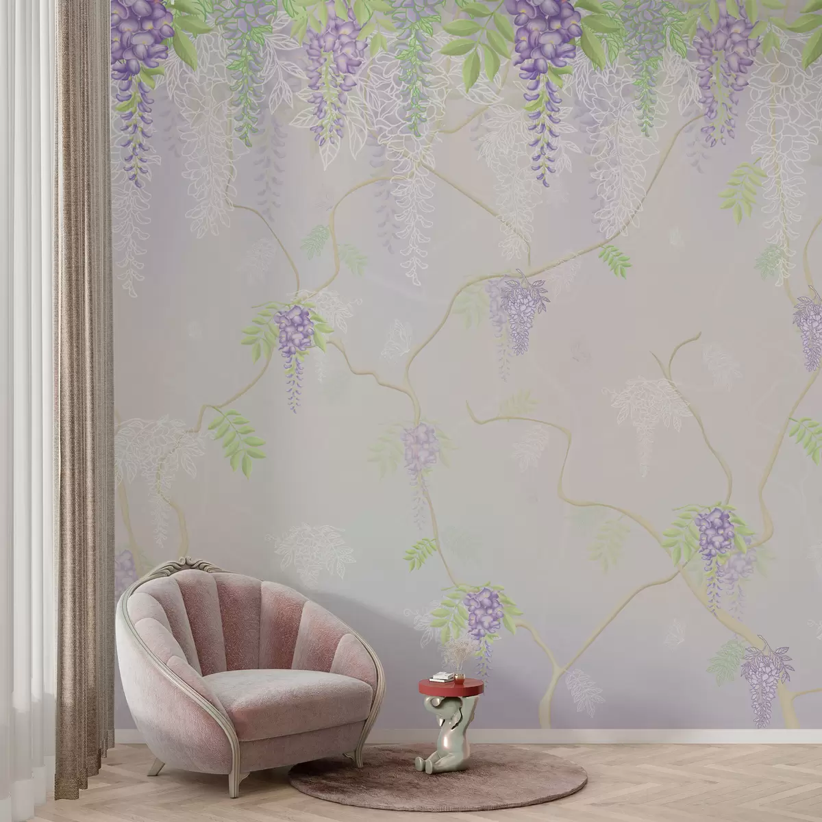 murais de parede Elegante desenho floral em tons pastel w01685