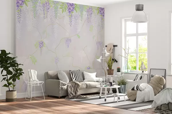 murais de parede Elegante desenho floral em tons pastel w01685