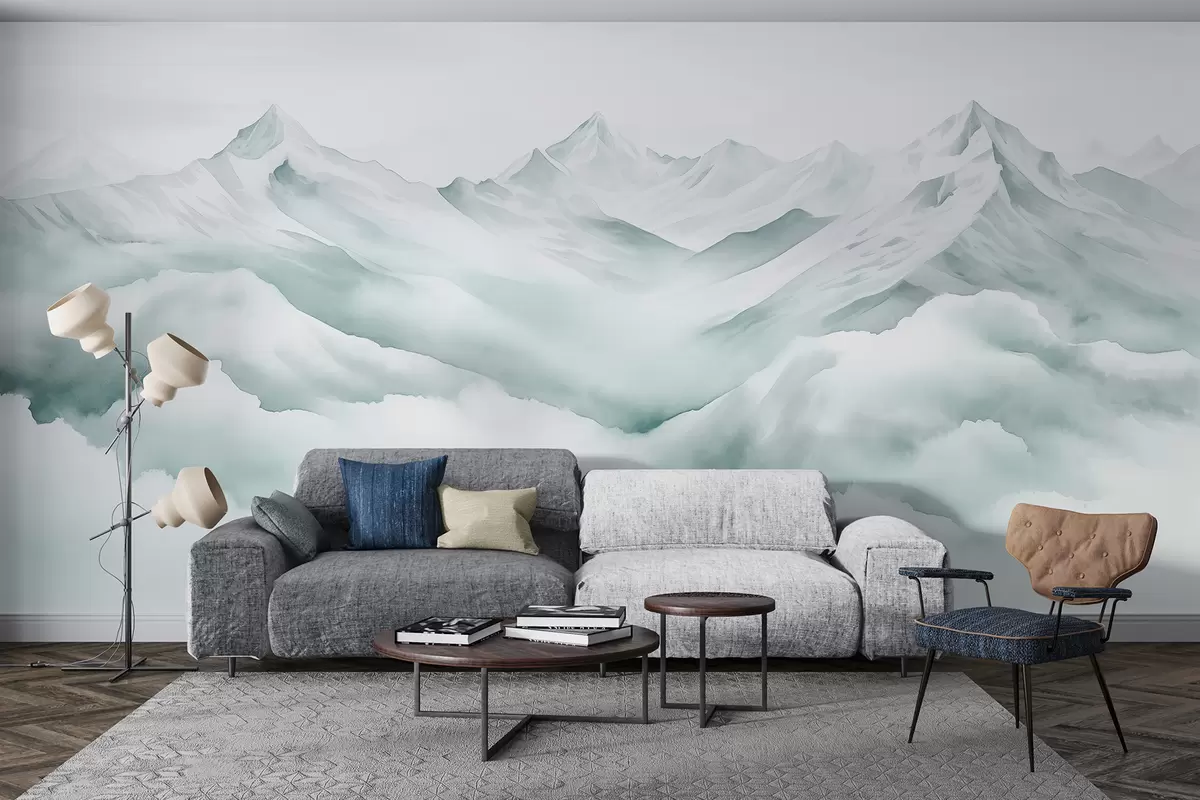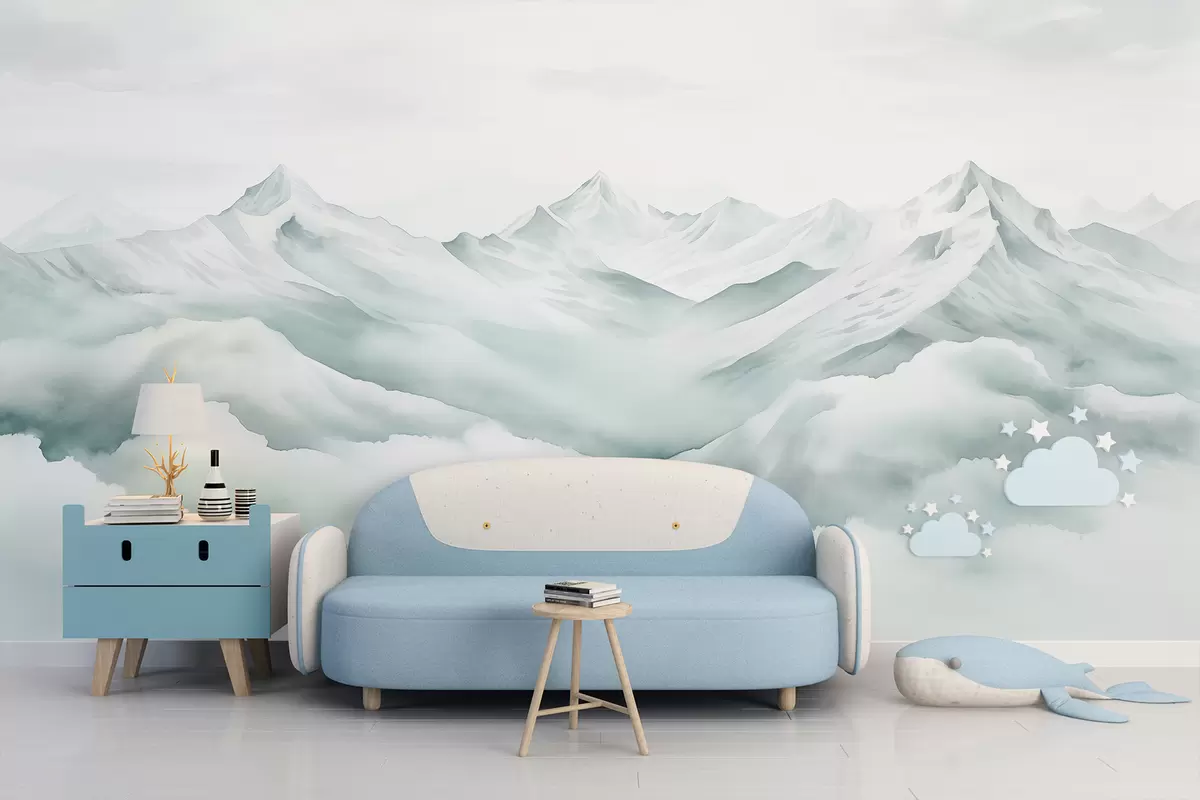 Murais de parede Paisagem de montanhas, aquarela, cores azuis suaves Nr. w01787v2