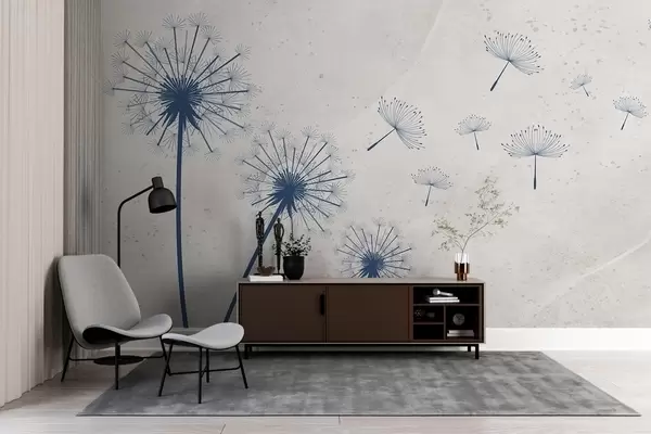 Murais de parede Dente-de-leão azul sobre fundo bege com textura Nr. w01812v2