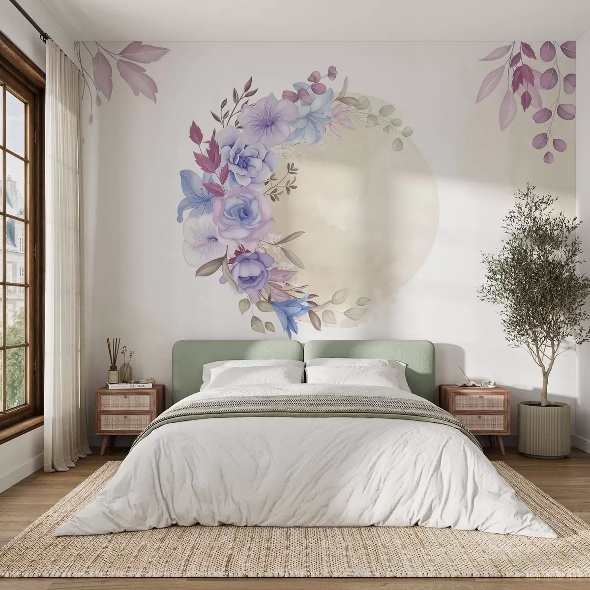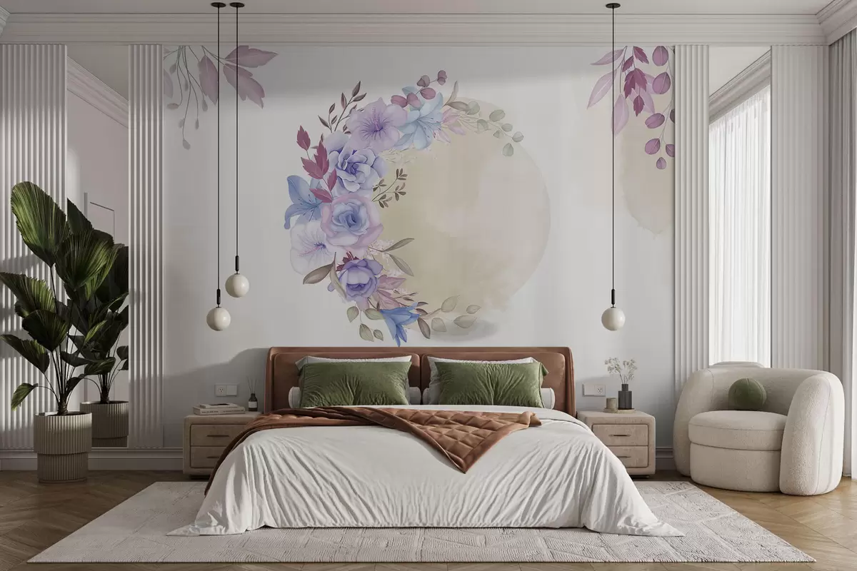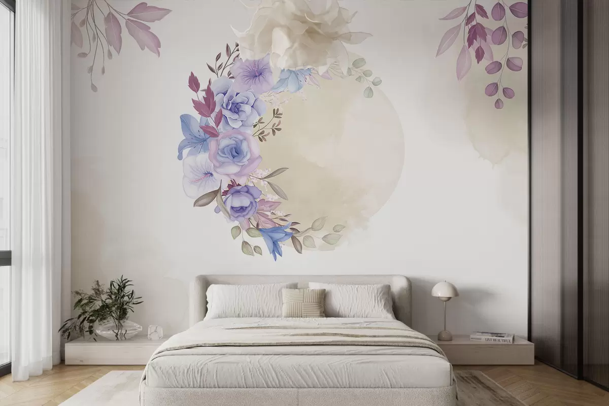Murais de parede Delicadas flores em forma de meia-lua em estilo aquarela com manchas bege Nr. w01874