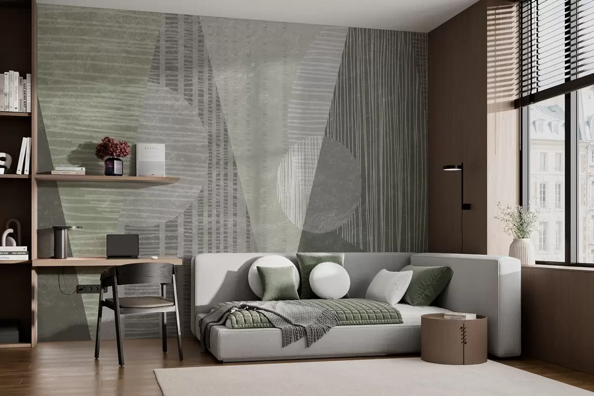 Murais de parede Geometria moderna em estilo vintage em cores verdes Nr. w02003v2