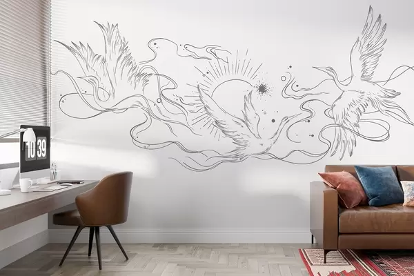 Murais de parede Pássaros voadores, desenho de linhas, minimalismo, paleta de cores cinza Nr. w02022v2