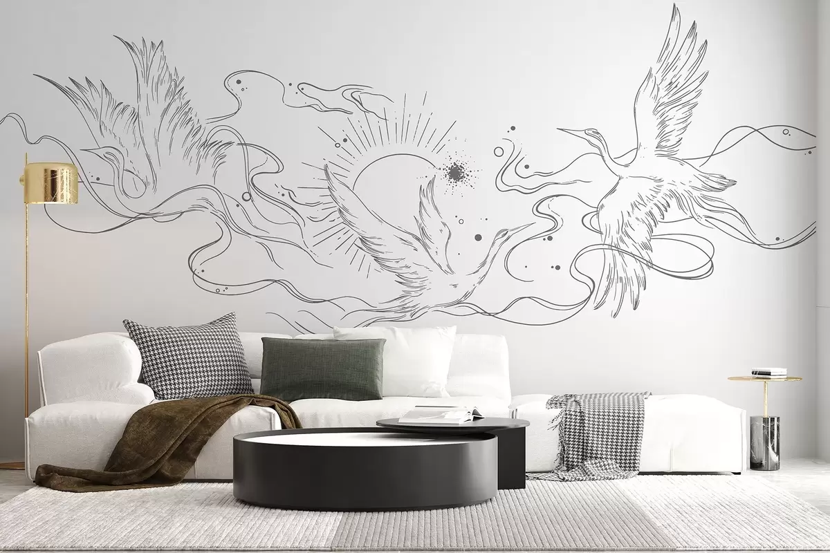 Murais de parede Pássaros voadores, desenho de linhas, minimalismo, paleta de cores cinza Nr. w02022v2