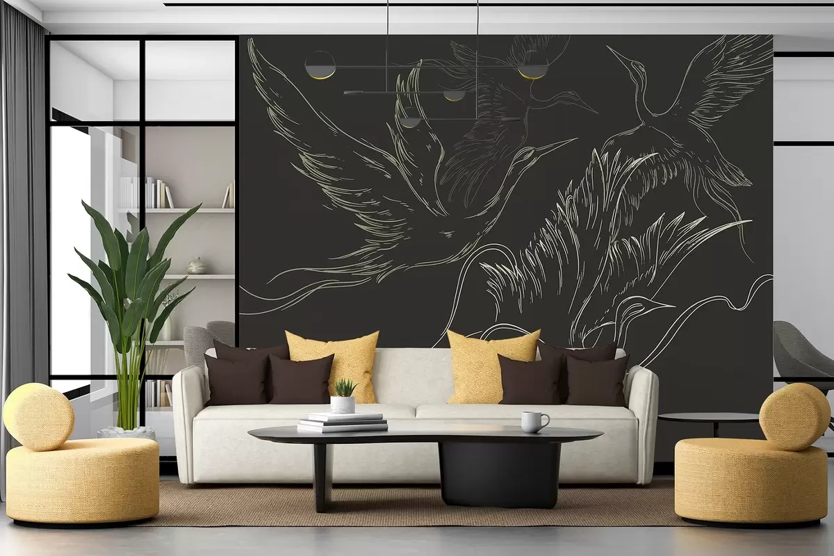 Murais de parede Pássaros voando, minimalismo, arte de linha, natureza, fundo escuro Nr. w02061v3