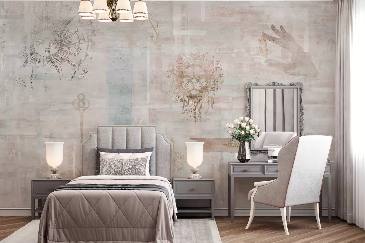 Murais de parede Papel de parede em estilo grunge com padrões em estilo vintage Nr. w02131