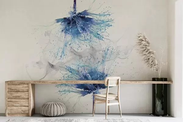 Murais de parede grandes flores azuis em close-up contra um fundo de fumaça Nr. w02137v2