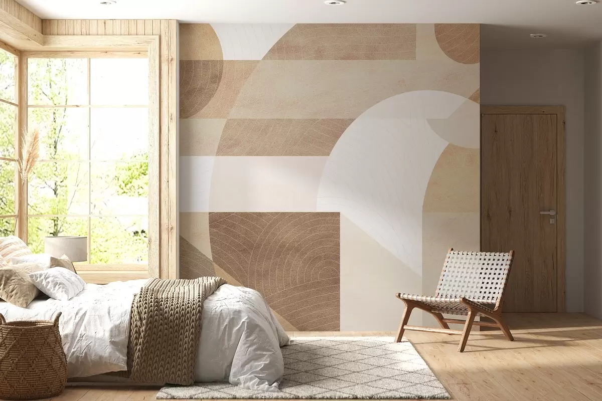 murais de parede Geometria moderna com formas abstratas, detalhes texturizados em tons de bege e marrom w02140