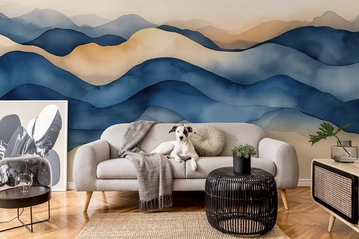 Murais de parede Ondas abstratas azul-bege que lembram montanhas Nr. w02196