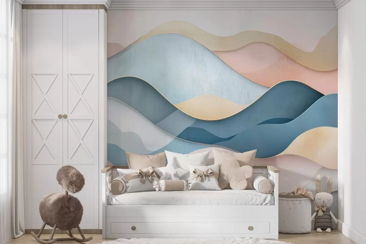 Murais de parede Padrão Art Déco ondulado nas cores rosa e azul Nr. w02290