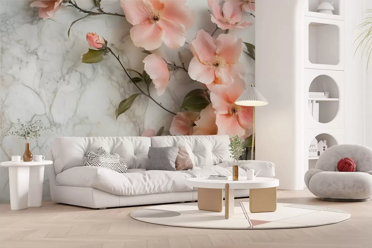 Murais de parede Flores delicadas sobre o fundo de imitação de mármore Nr. w02291