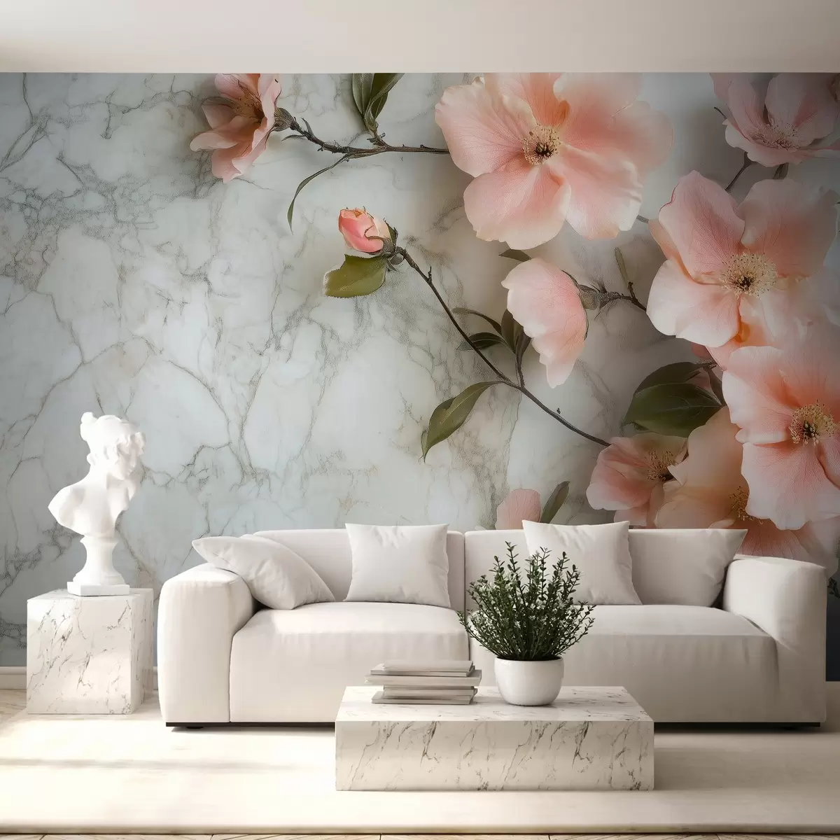 Murais de parede Flores delicadas sobre o fundo de imitação de mármore Nr. w02291