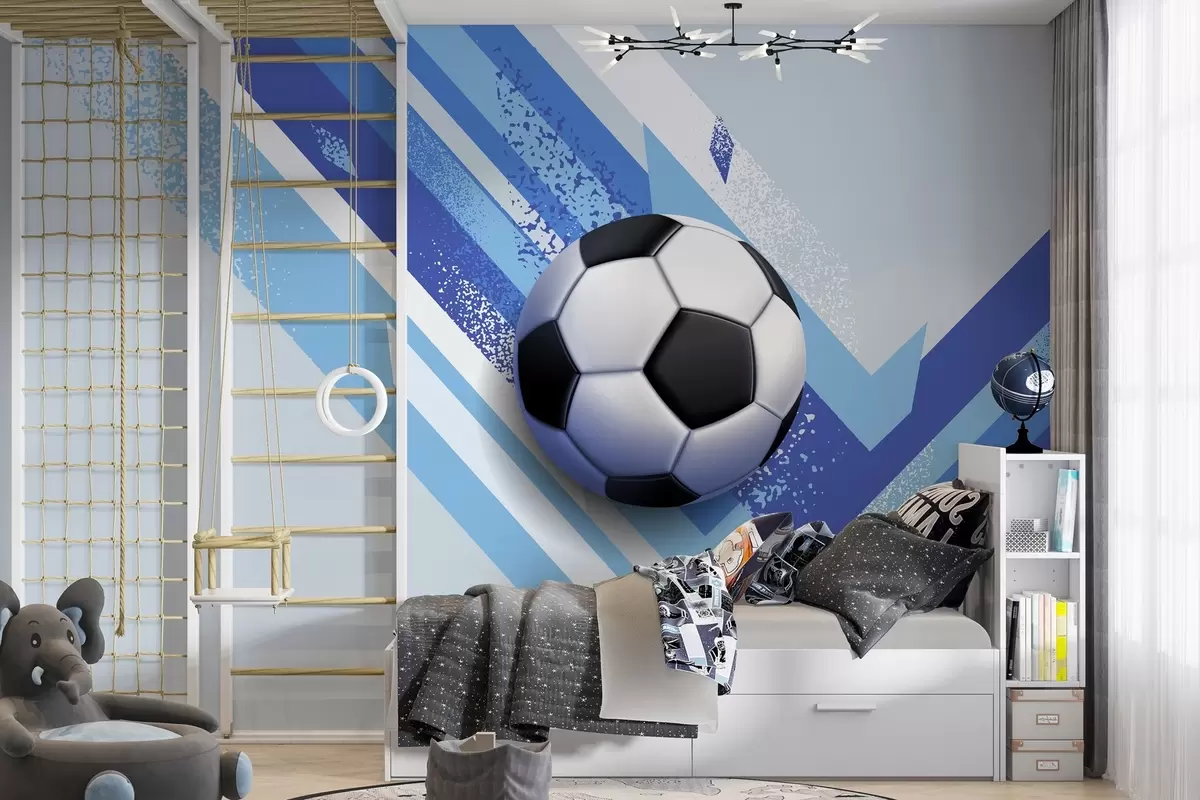 Murais de parede bola de futebol em um fundo abstrato dinâmico nas cores azuis Nr. w02347