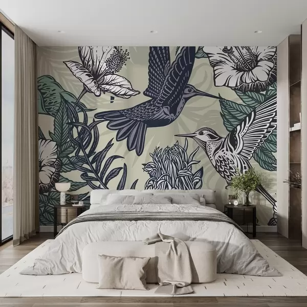 Murais de parede Beija-flores e flores em flor Nr. w02362