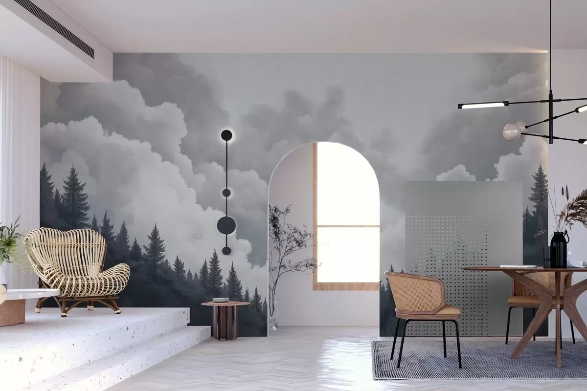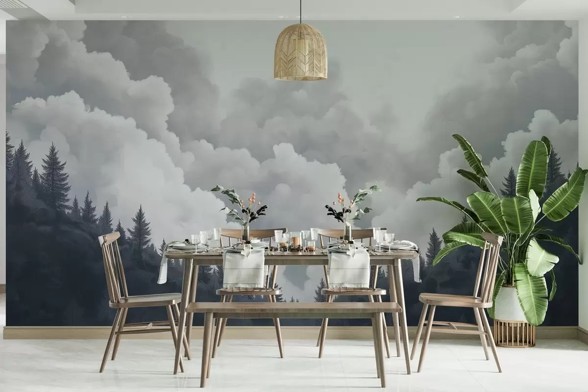 Murais de parede Pintura de nuvens espessas sobre a floresta em estilo a óleo Nr. w02411