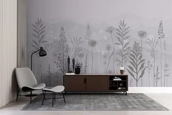 Murais de parede papel de parede em estilo ecológico, flores silvestres em tons de cinza Nr. w02443