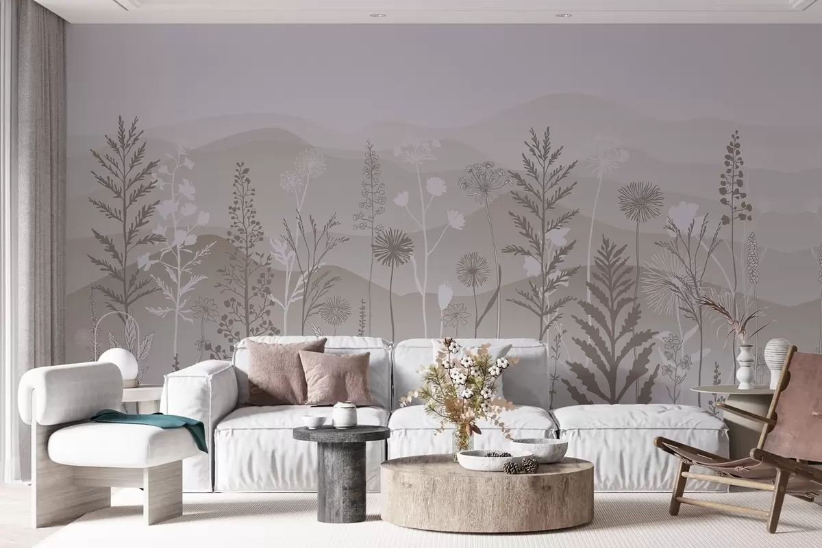 Murais de parede papel de parede em estilo ecológico, flores silvestres em tons de marrom claro Nr. w02443v1