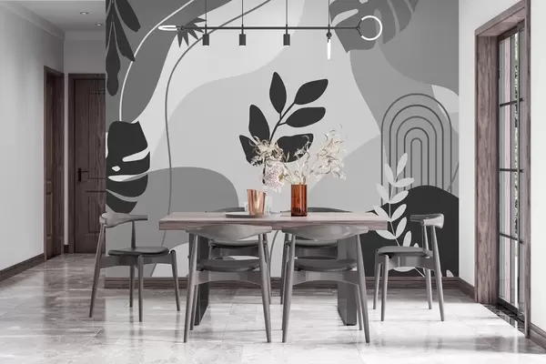 Murais de parede Padrão abstrato com silhuetas de folhas Nr. w02462v2