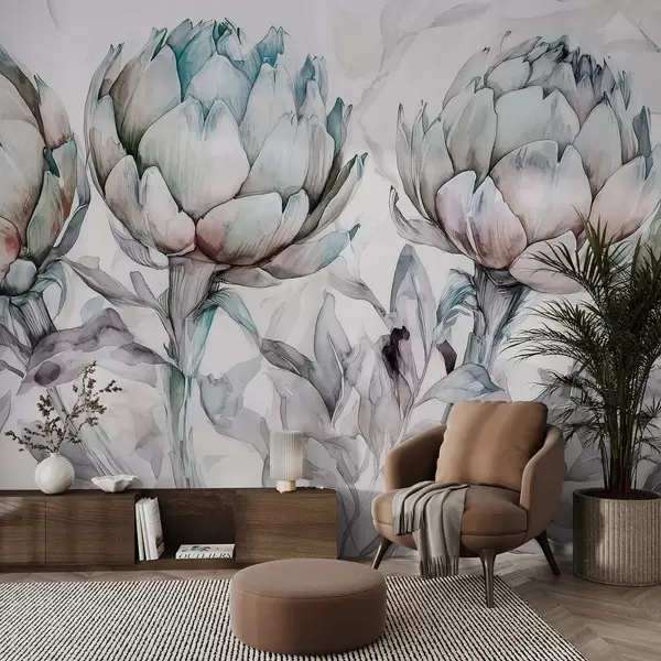 Murais de parede Belo desenho de alcachofras, estilo aquarela, cores suaves Nr. w02482v1
