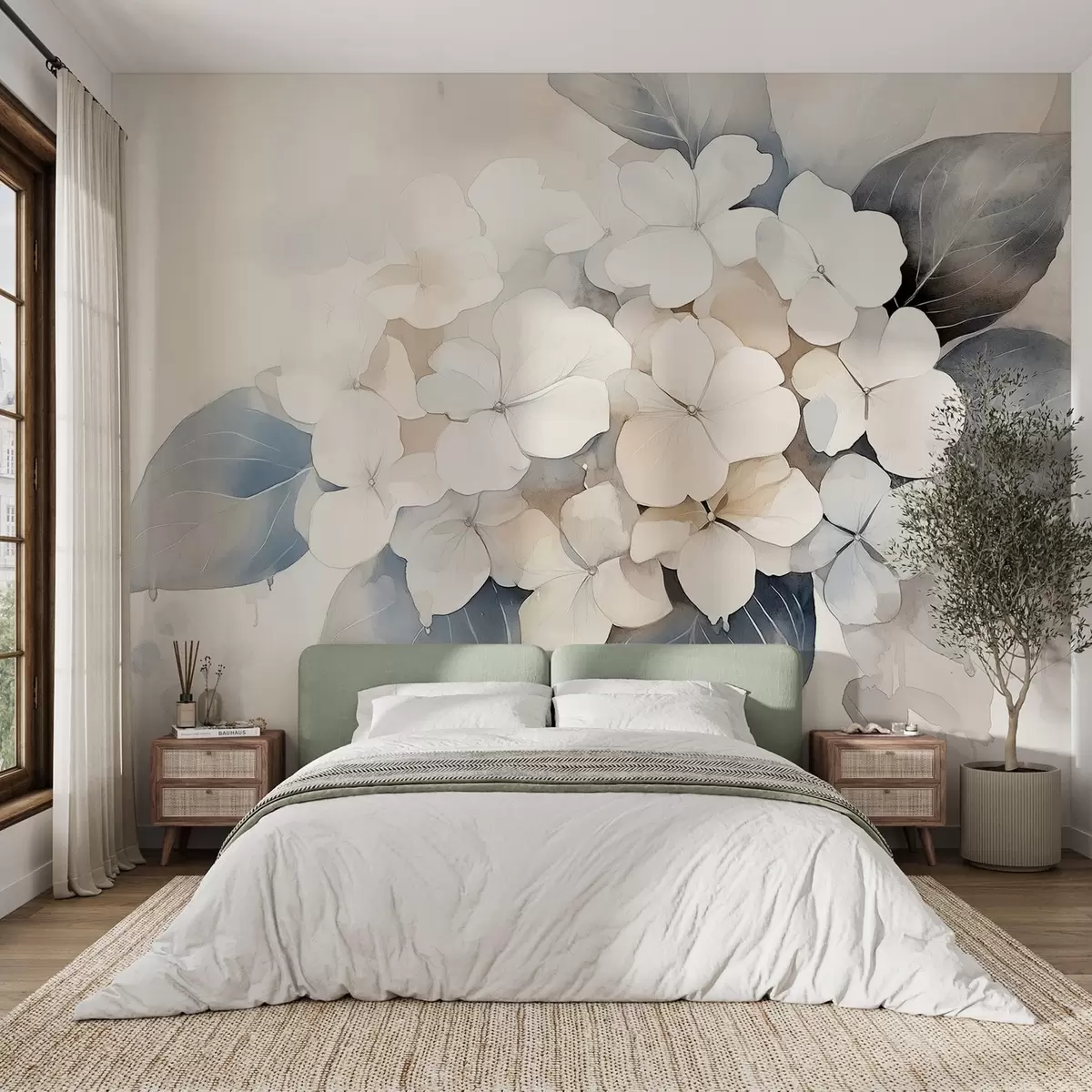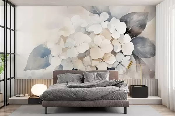 Murais de parede Flor de hortênsia, cores suaves, estilo aquarela Nr. w02491