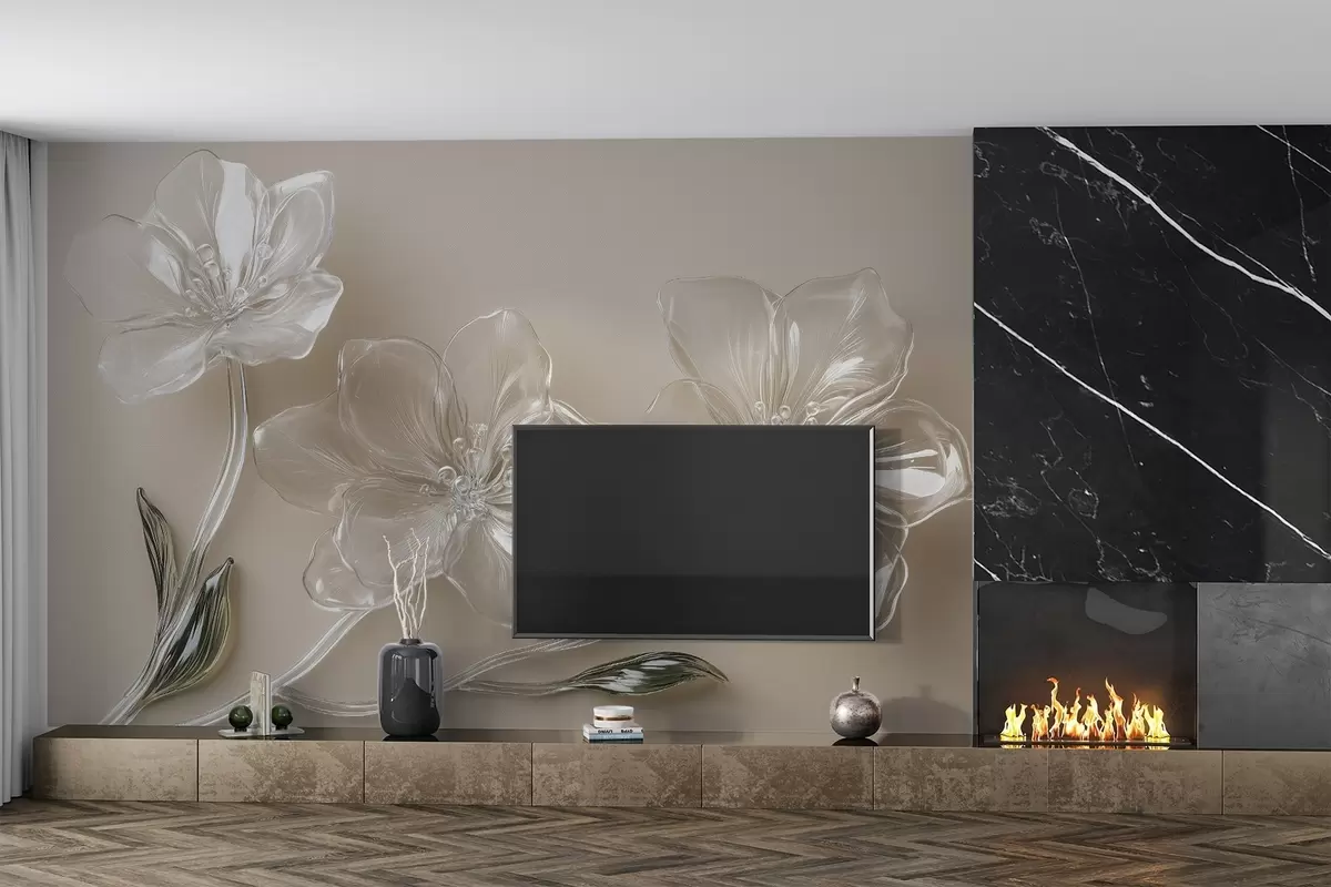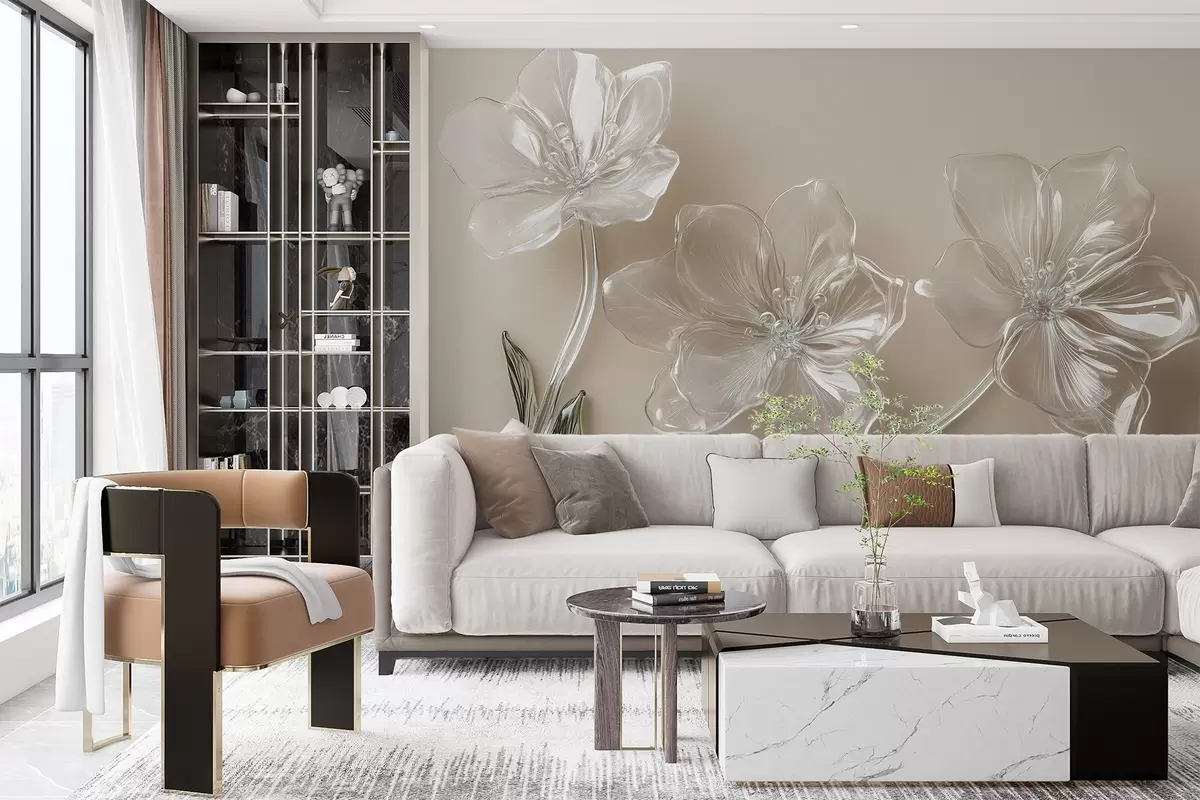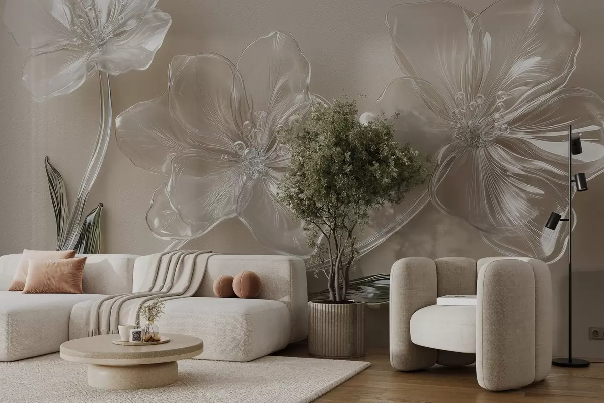 Murais de parede flores grandes em imitação de vidro em um fundo bege Nr. w02518