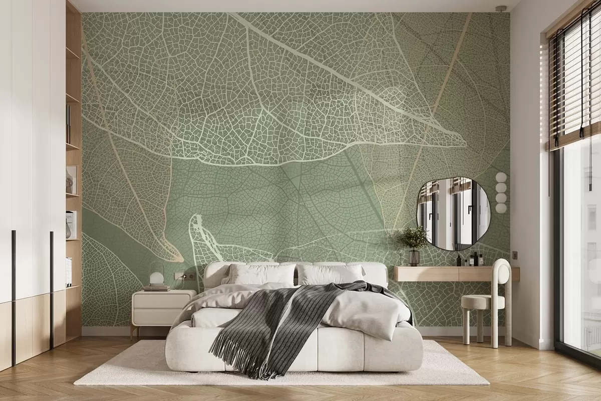 Murais de parede close-up de folhas com veias em tons de verde claro Nr. w02520