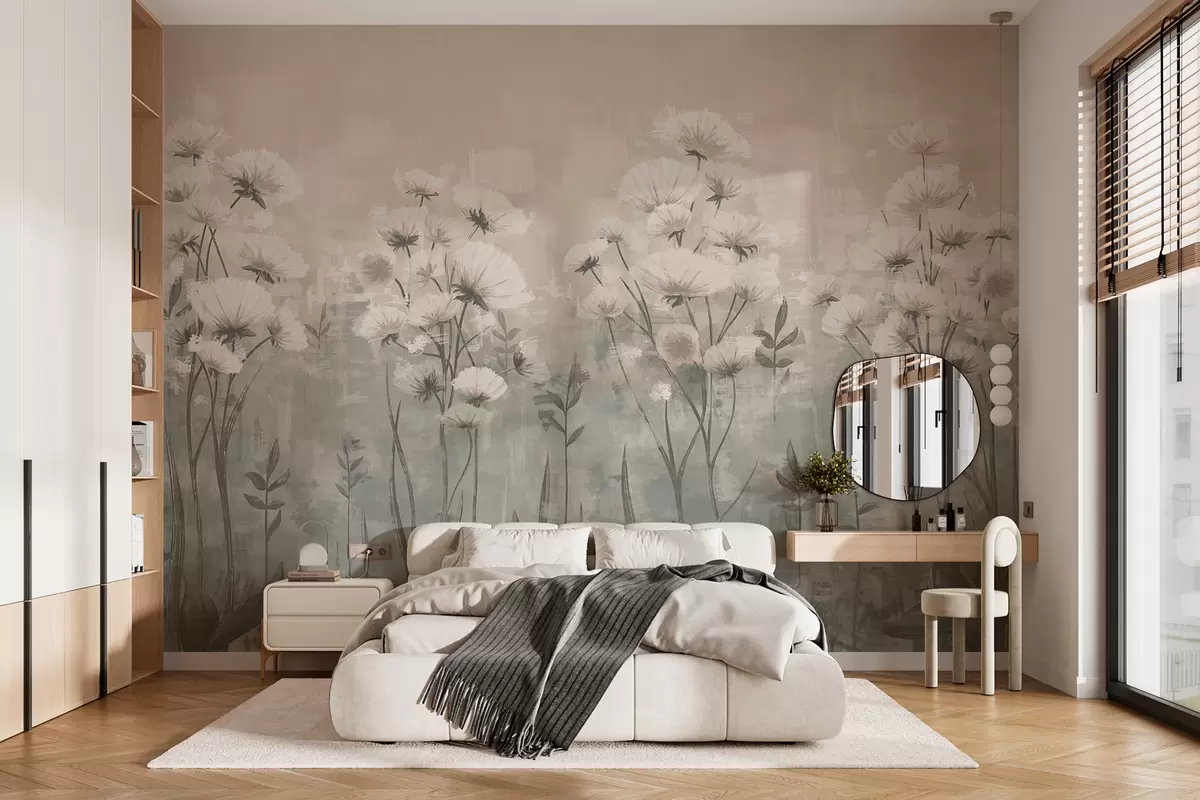 Murais de parede Flores silvestres delicadas com efeito de pincelada em cores pastéis Nr. w02629v2