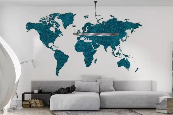 Murais de parede Mapa-múndi com musgo, natureza, paleta de cores azul Nr. w02657v1