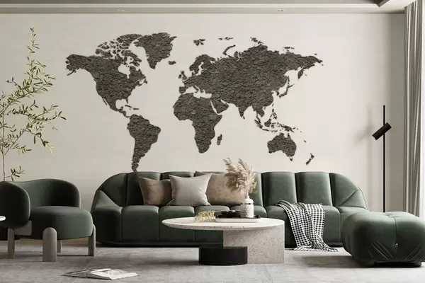 Murais de parede Mapa-múndi com musgo, natureza, paleta de cores cinza Nr. w02657v6
