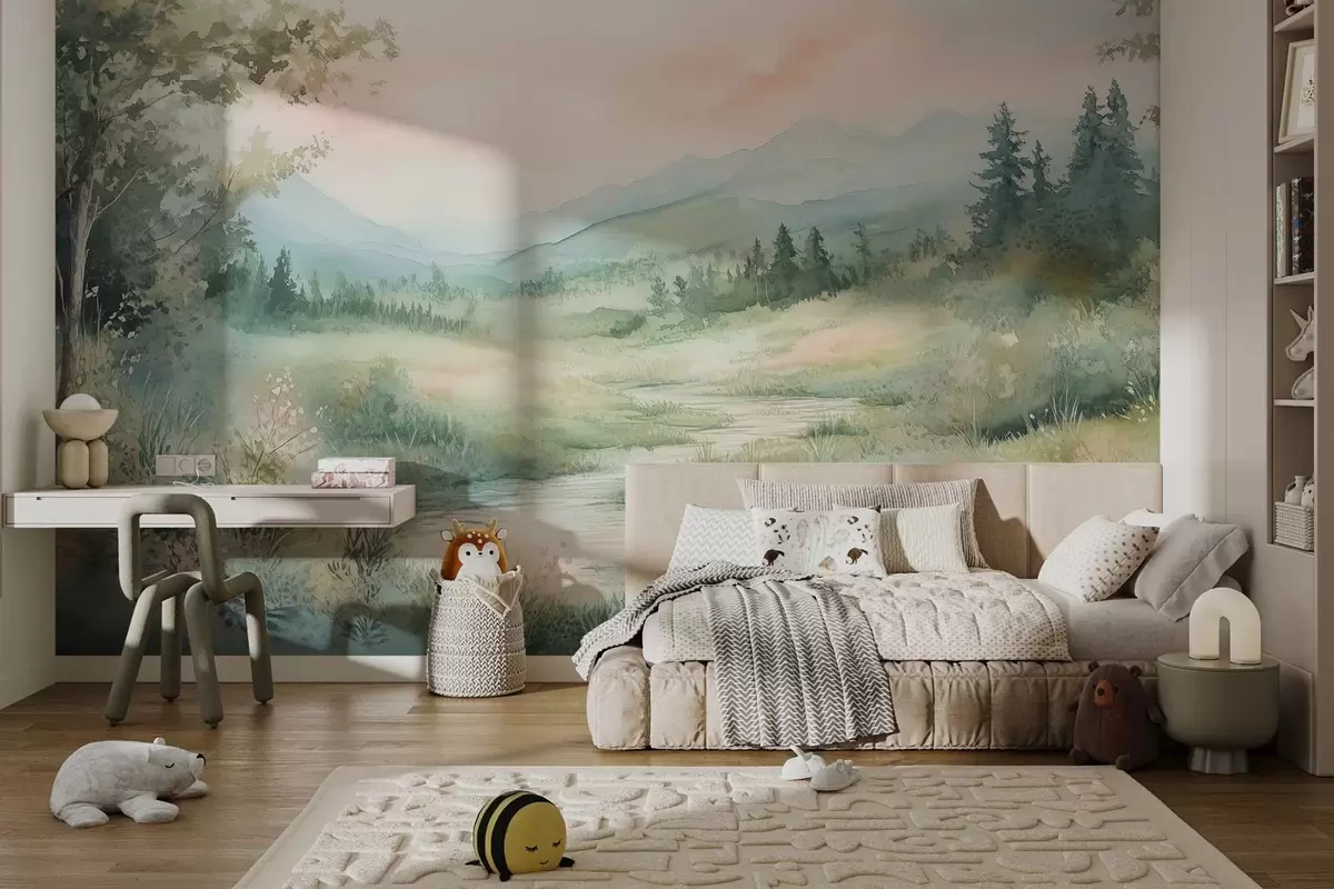 Murais de parede paisagem em aquarela com um caminho e montanhas Nr. w02764