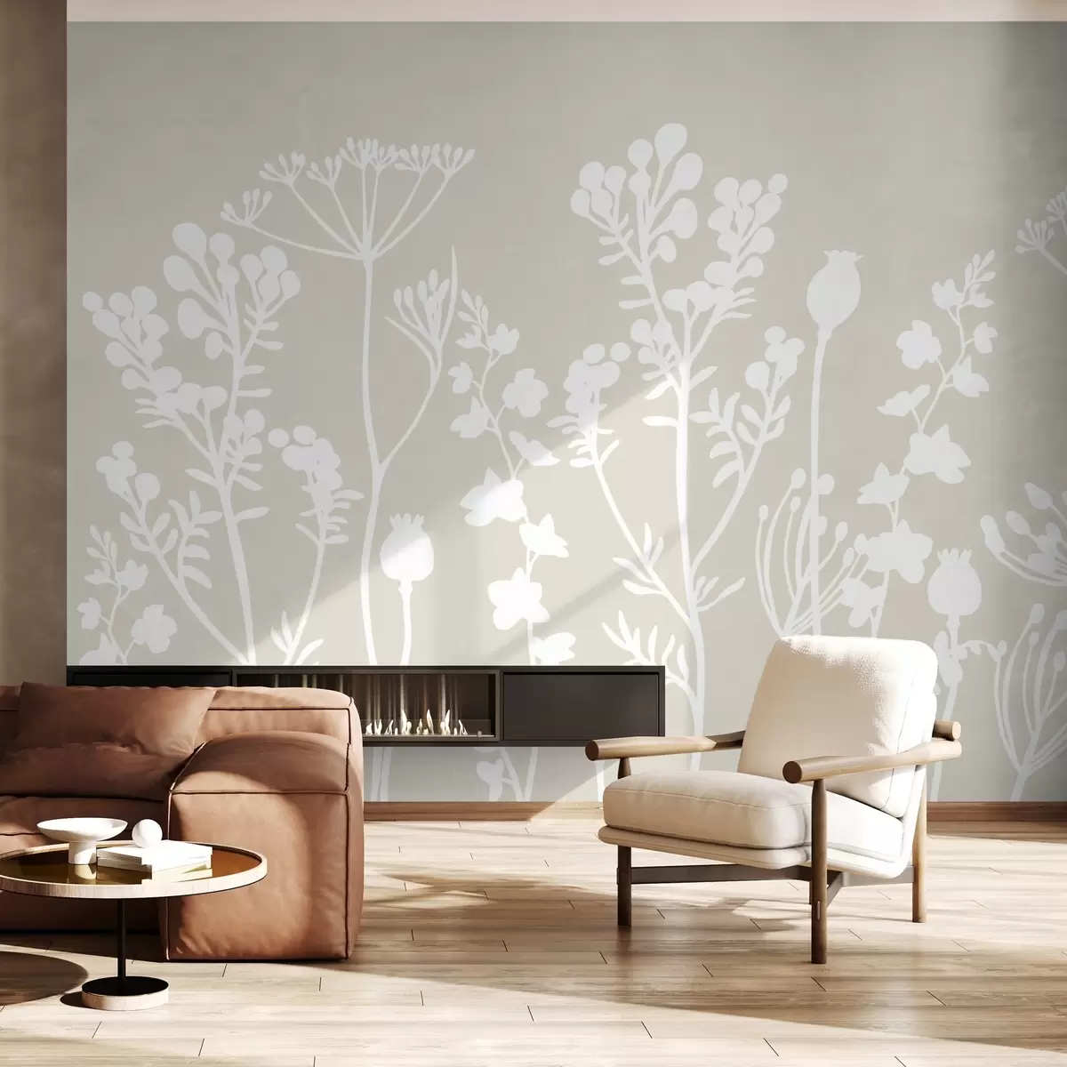 Murais de parede silhuetas brancas de flores em um fundo bege Nr. w02809v2