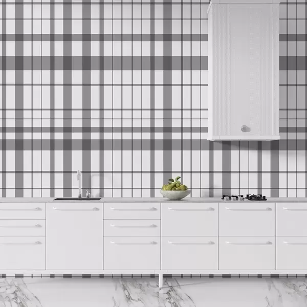Murais de parede Padrão xadrez minimalista com linhas finas e cinza escuro em um fundo branco, precisão geométrica Nr. w02852