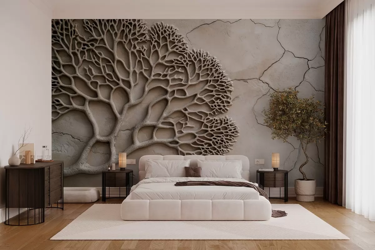 Murais de parede Papel de parede em estilo de relevo com madeira e rachaduras Nr. w02908