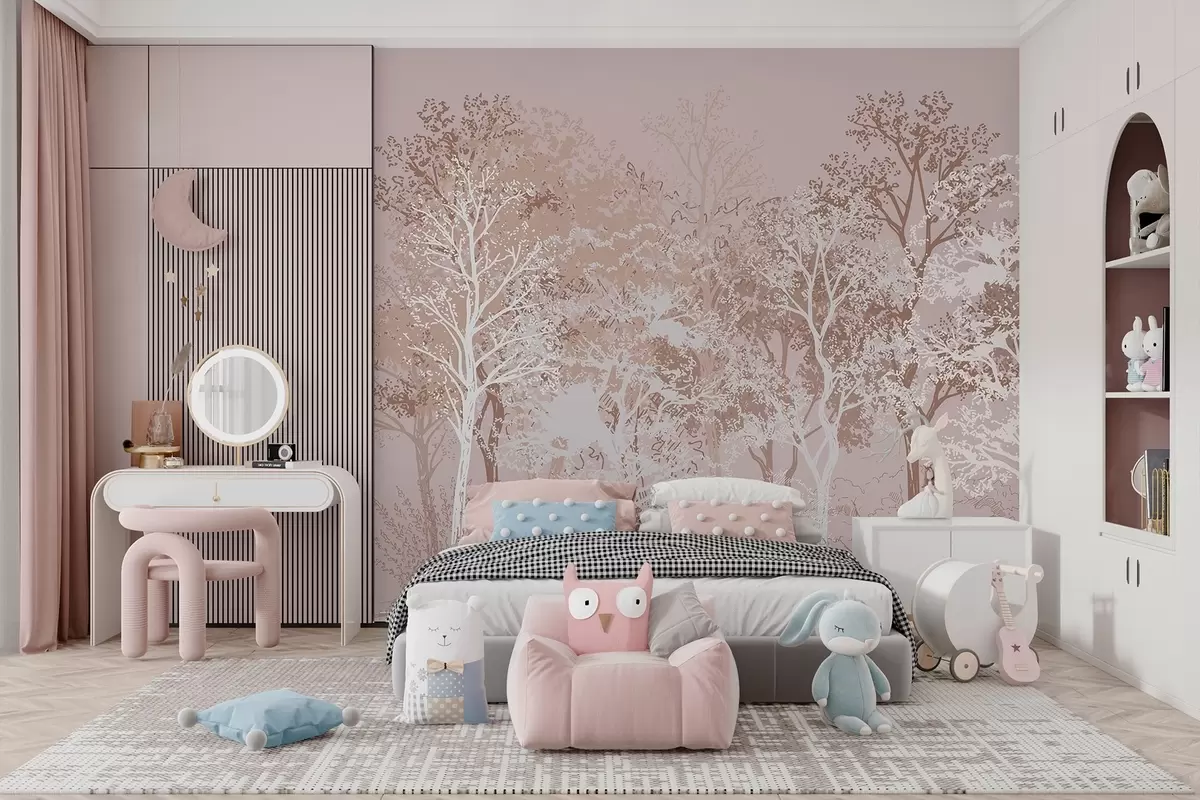 Murais de parede Árvores na floresta, minimalismo, natureza, paleta de cores bege Nr. w02930