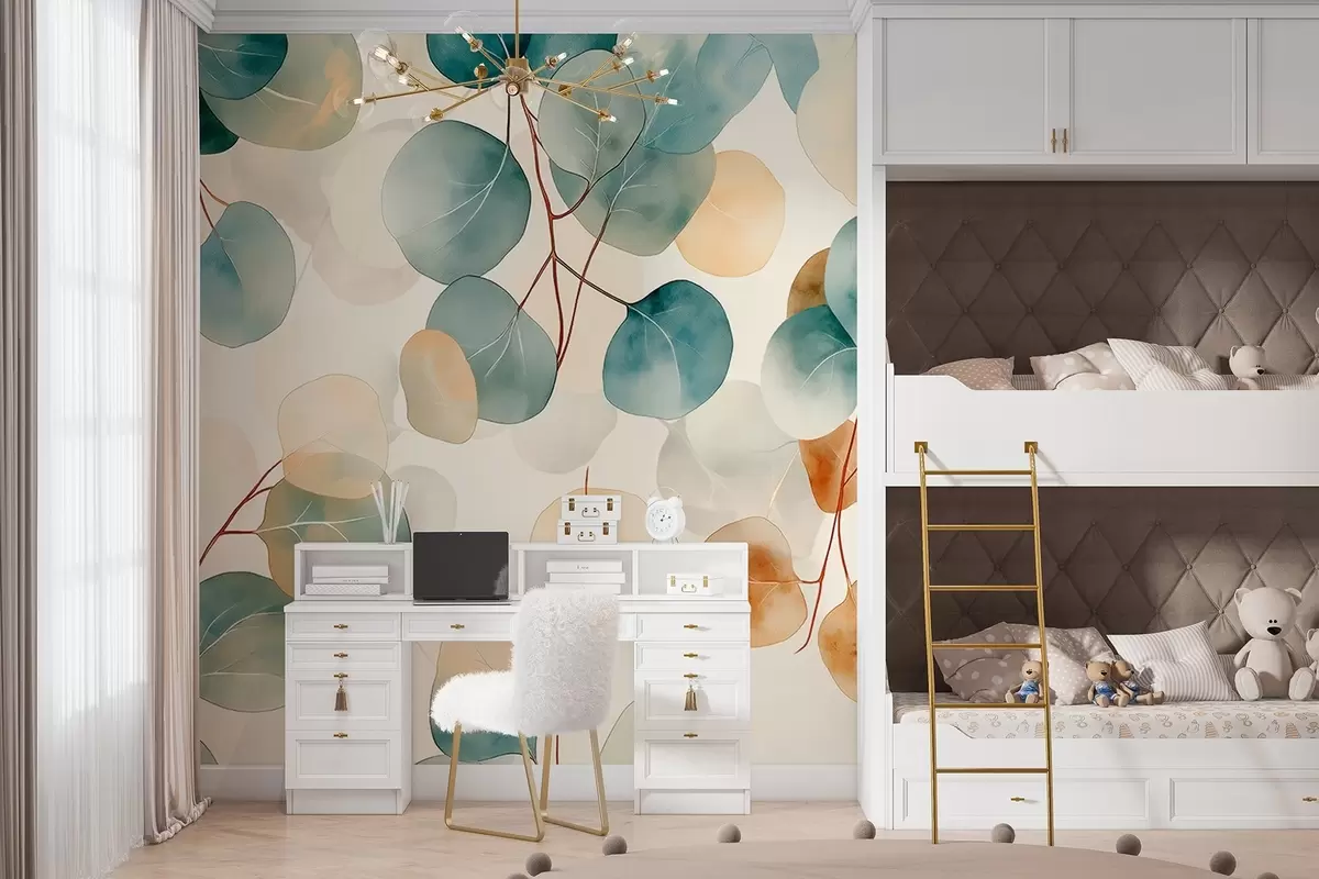 Murais de parede Desenho de eucalipto em estilo aquarela, cores pastéis suaves, floral Nr. w02938